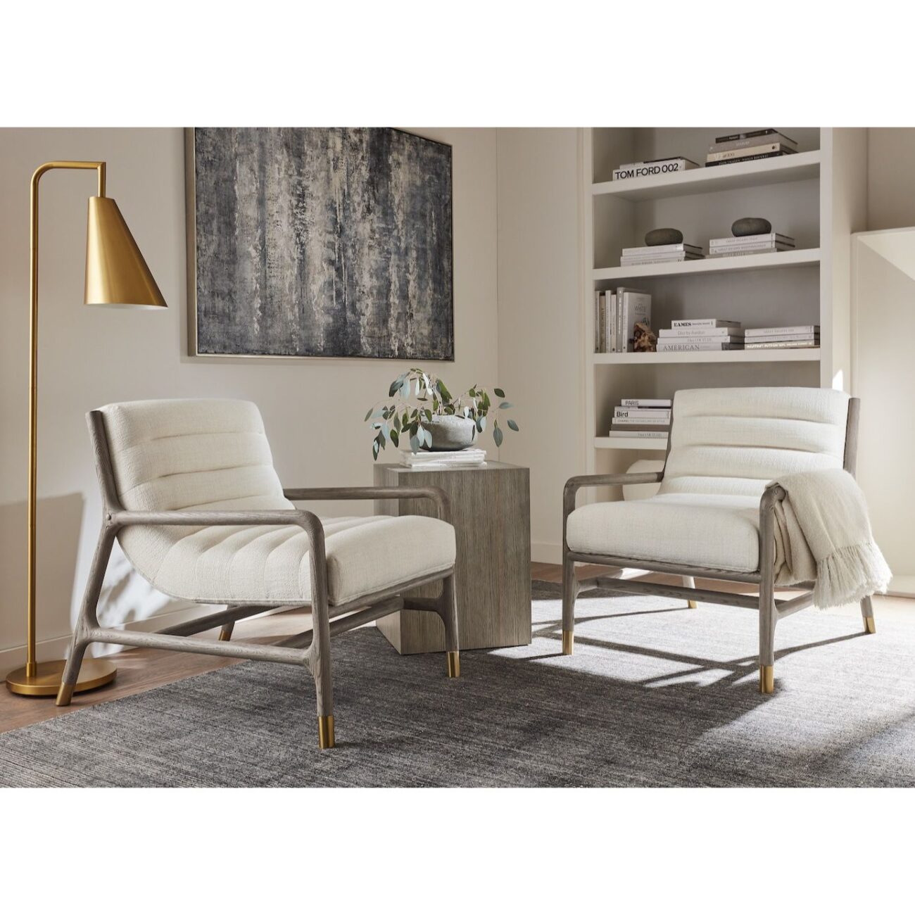 Material Color: Grey Wood with Gold Metal Stripe Inlay