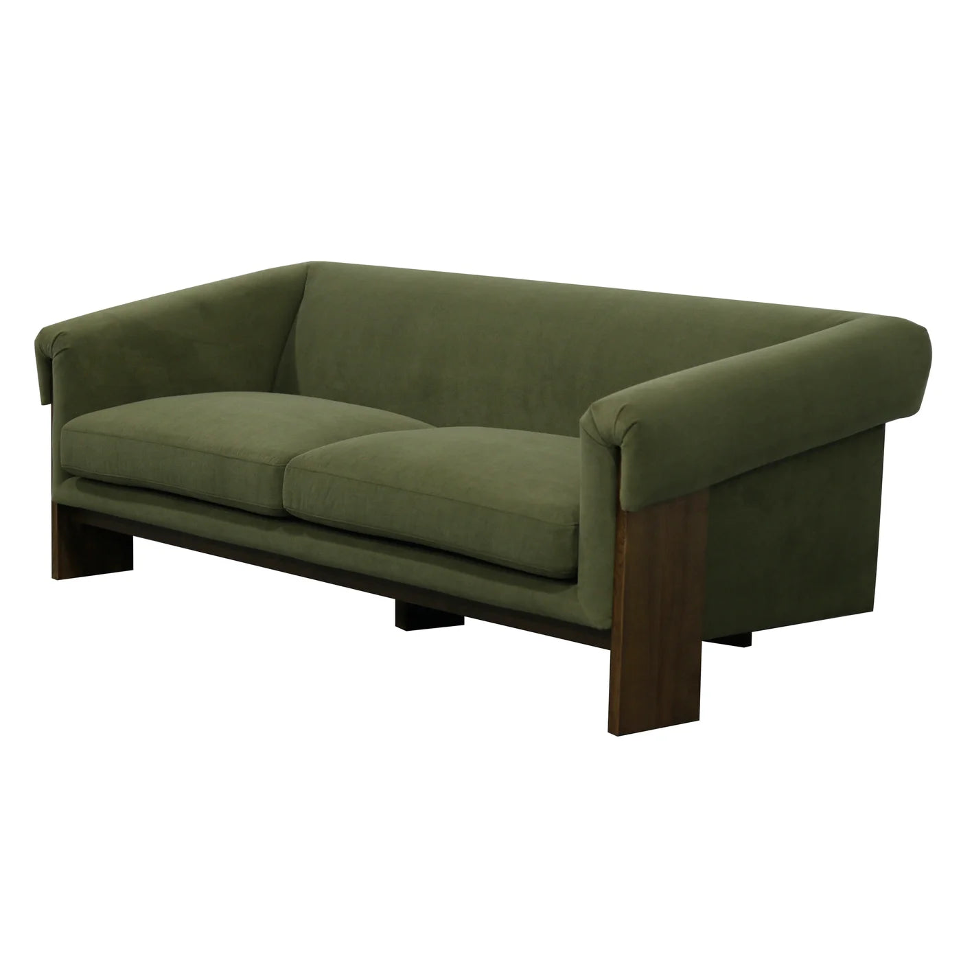 Dark Moss Velvet Fabric on Walnut Finished Ash Frame