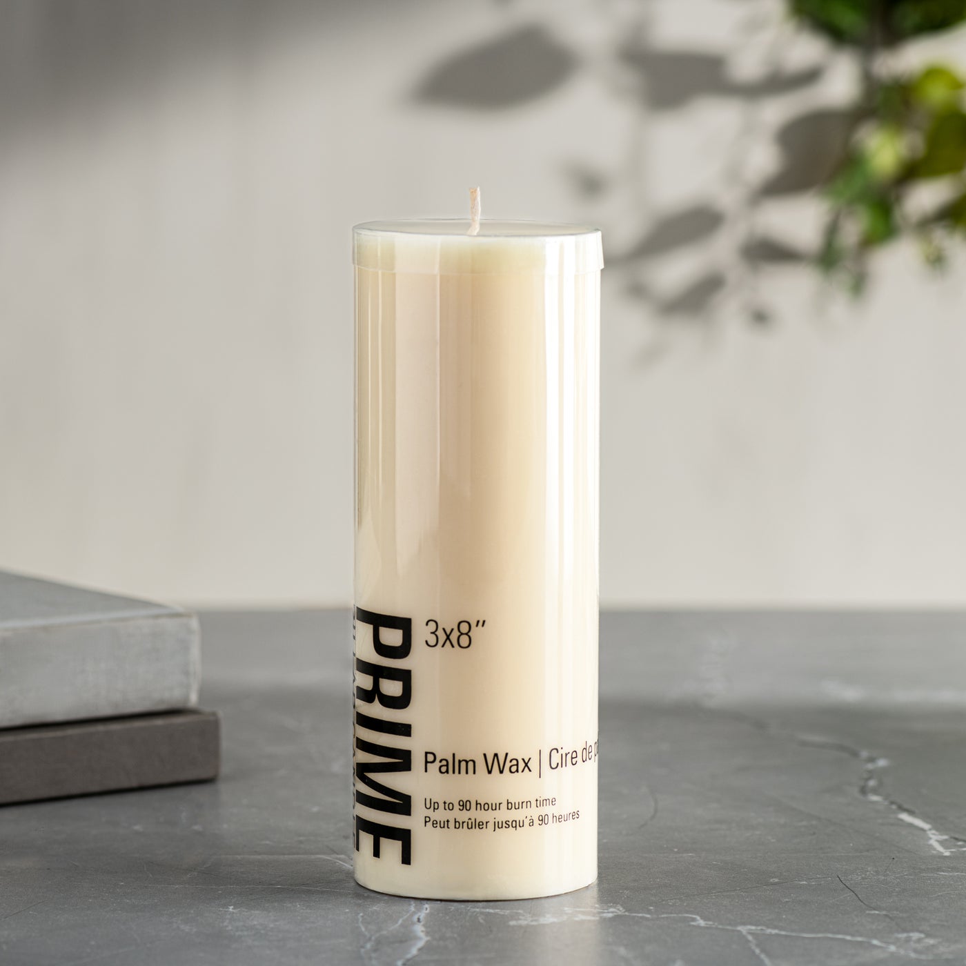 Prime Palm Wax 3d x 8" Pillar Candle - Ivory